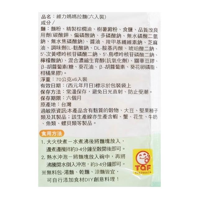 味達食品味達- 乾貨 6入/維力/快煮/媽媽拉麵/拉麵/麵條 (70gx6入)