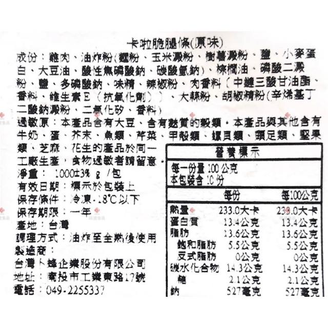 味達食品1kg/卜蜂/卡啦脆腿條/雞腿條/原味/腿條/卡啦/炸物/氣炸鍋商品/酥脆/卡拉雞腿
