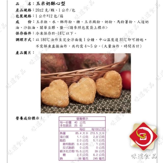 味達食品1kg/正點/玉米奶酥心型/心型玉米奶酥/玉米布丁酥/奶酥/炸物/氣炸鍋