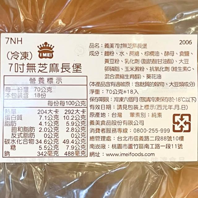 味達食品1.26kg/18個入/義美/7吋長堡麵包/麵包/長堡/潛艇堡/熱狗堡/大亨堡