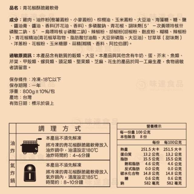 味達食品800g/卜蜂/青花椒酥脆雞軟骨(預炸)/青花椒雞軟骨/雞軟骨/酥炸雞軟骨/青花椒/炸物/氣炸鍋美食