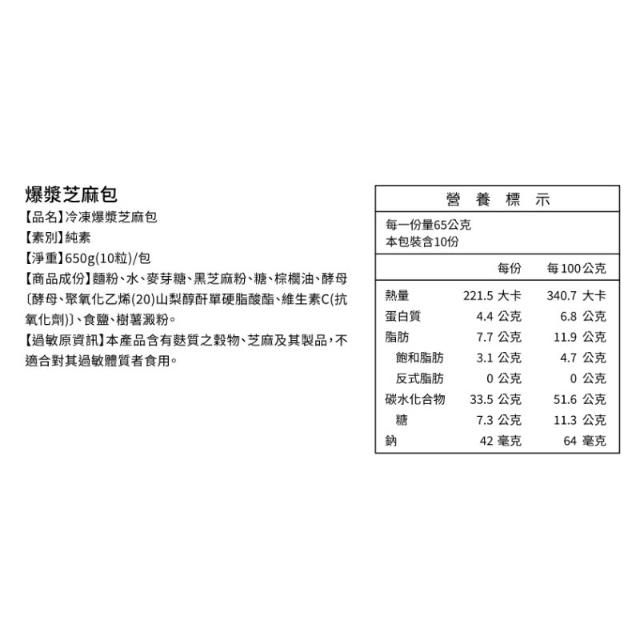 味達食品65gx10入/爆漿芝麻包/芝麻包/芝麻包子/包子饅頭類/冷凍食品/蒸包食品