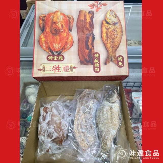 1200g/盒裝三牲禮/祭拜三牲組/雞豬魚/拜拜三牲/三牲/烤全雞/烤魚/烤鹹豬肉