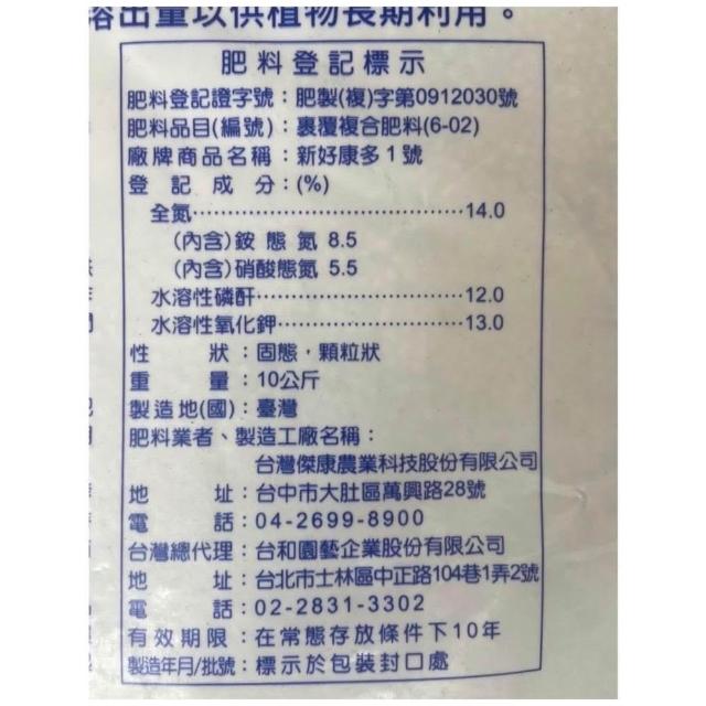 天橙種子新好康多1號70天型 10公斤裝 肥料 長效肥 花肥 水果肥 蔬菜肥 複合式肥料