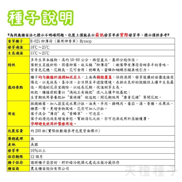 天橙種子柳薄荷種子H-025 約200粒 藥用神香草 香草種子 農友種苗 彩色原包裝