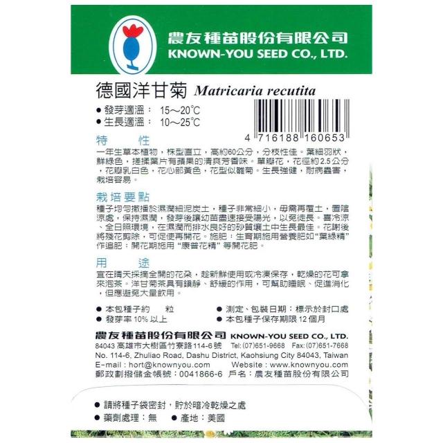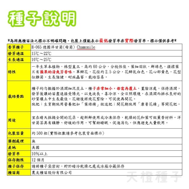 天橙種子德國洋甘菊種子 H-065 約500粒 母菊 香草種子 農友種苗 彩色原包裝