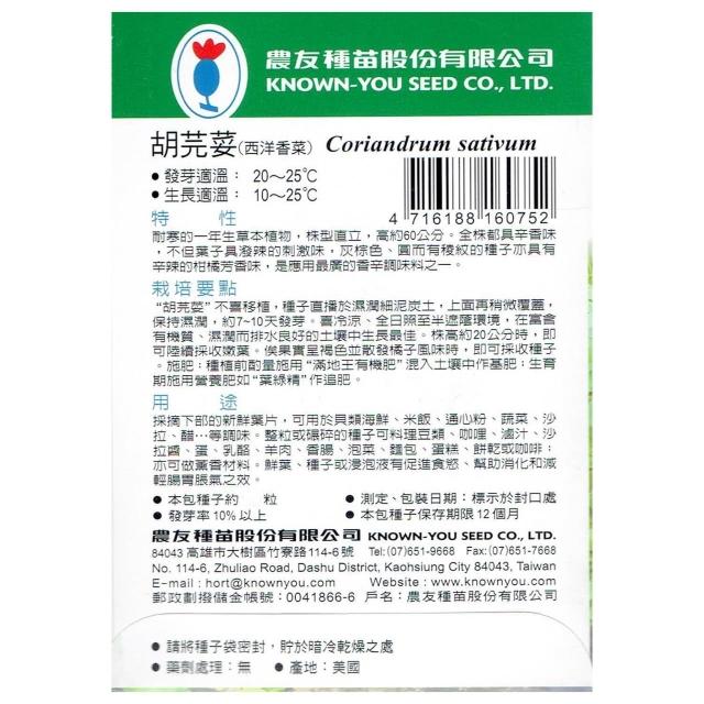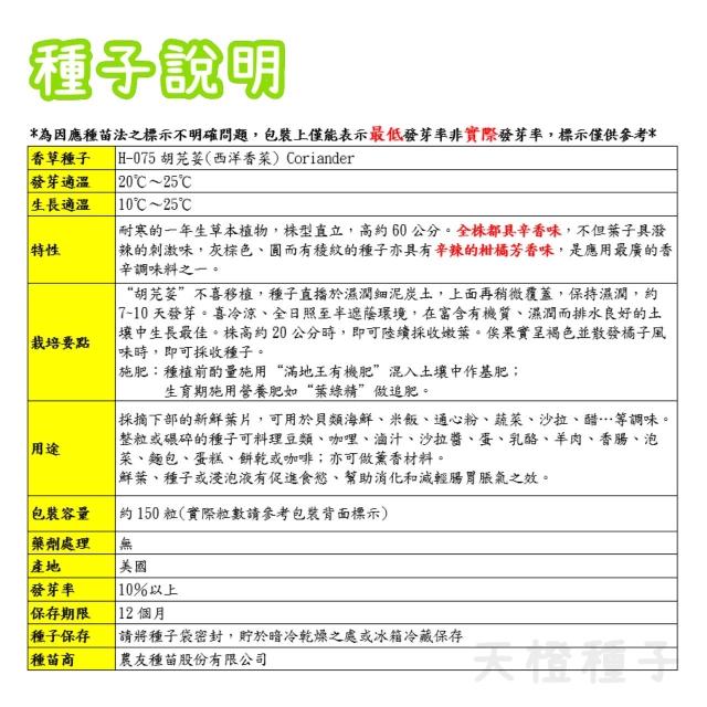 天橙種子胡芫荽種子 H-075 約150粒 西洋香菜 香草種子 農友種苗 彩色原包裝