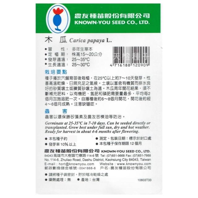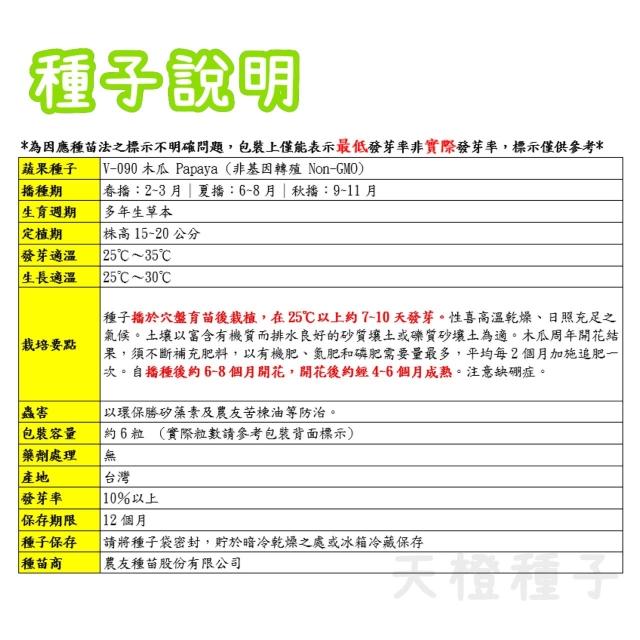 天橙種子木瓜種子 V-090 約6粒 蔬果種子 水果類 農友種苗 彩色原包裝