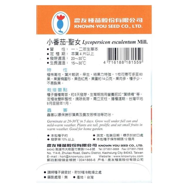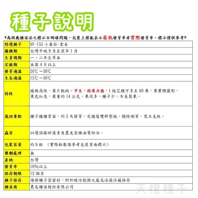 天橙種子小番茄-聖女種子 SV-155 約6粒 小蕃茄 特選種子 果菜類 農友種苗 彩色原包裝
