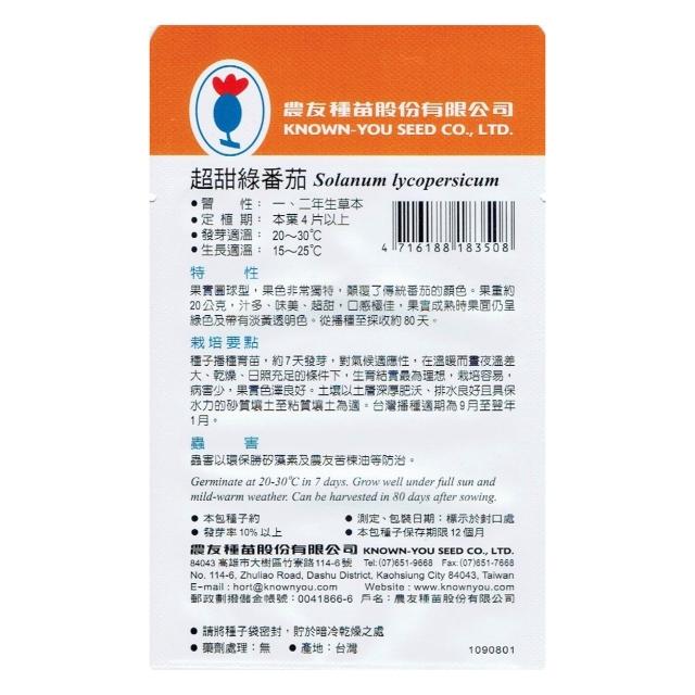 天橙種子超甜綠番茄種子 SV-350 約15粒 蕃茄 特選種子 瓜果類 農友種苗 彩色原包裝