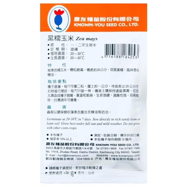 天橙種子黑糯玉米種子 SV-425 約20公克 特選種子 根莖類 農友種苗 彩色原包裝