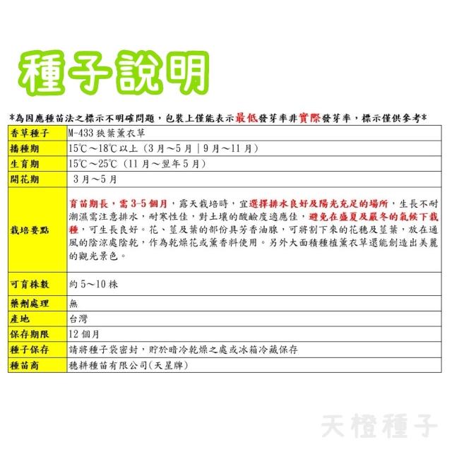 天橙種子狹葉薰衣草種子 真薰衣草 香草種子 天星牌 穗耕種苗 彩色原包裝
