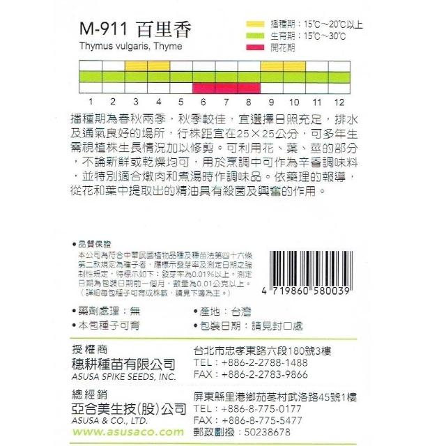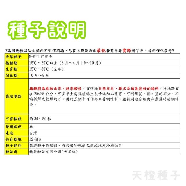 天橙種子百里香種子 香草種子 天星牌 穗耕種苗 彩色原包裝