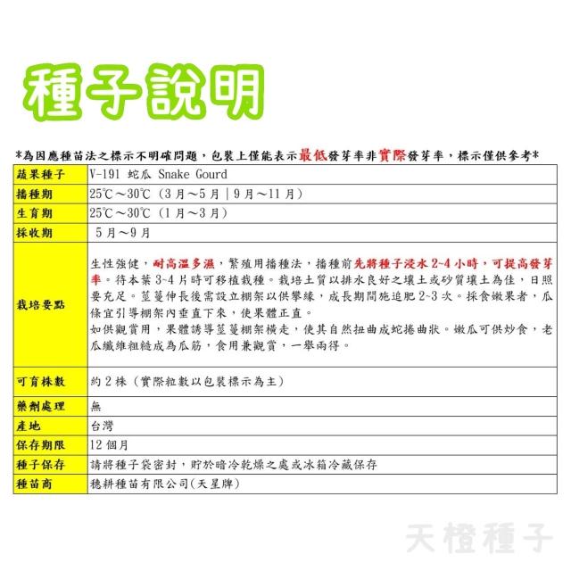 天橙種子蛇瓜種子 Snake Gourd 瓜果種子 天星牌 穗耕種苗 彩色原包裝