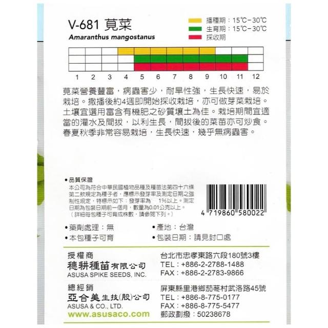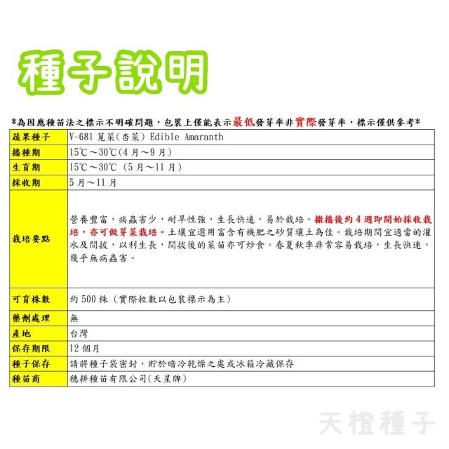 天橙種子莧菜種子 杏菜 Edible Amaranth 4~10月播種 葉菜類種子 天星牌 穗耕種苗 彩色原包裝