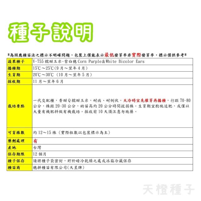 天橙種子糯甜玉米-紫白穗種子 糯玉米 根莖類種子 天星牌 穗耕種苗 彩色原包裝 小包裝