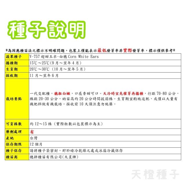 天橙種子超甜玉米-白穗種子 白玉米 根莖類種子 天星牌 穗耕種苗 彩色原包裝 小包裝