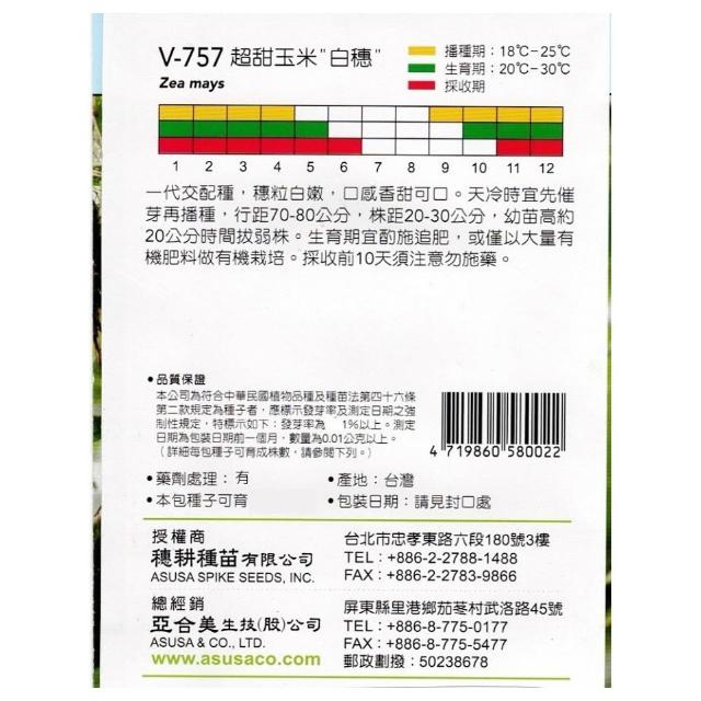 天橙種子超甜玉米-白穗種子 白玉米 根莖類種子 天星牌 穗耕種苗 彩色原包裝 小包裝