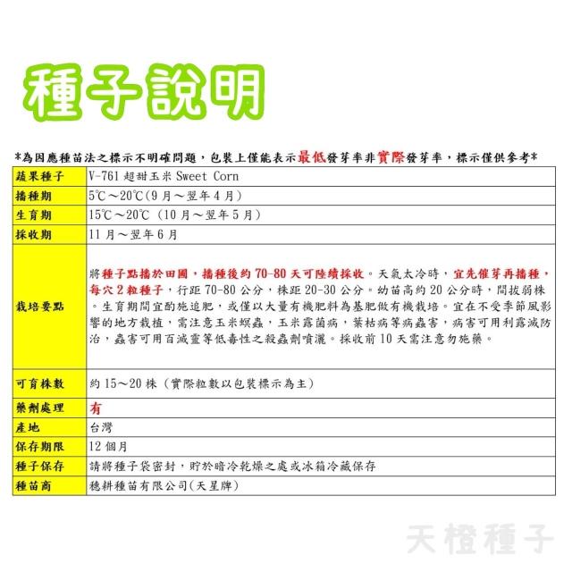 天橙種子超甜玉米種子 黃玉米 根莖類種子 天星牌 穗耕種苗 彩色原包裝 小包裝