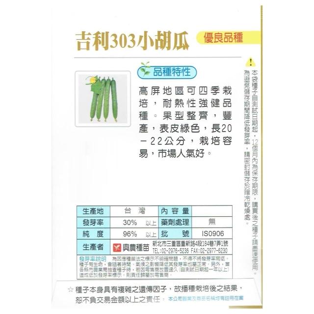 天橙種子吉利303小胡瓜種子 小黃瓜 約30粒 瓜果類 全年可播種 耐熱品種 興農種苗 彩色原包裝