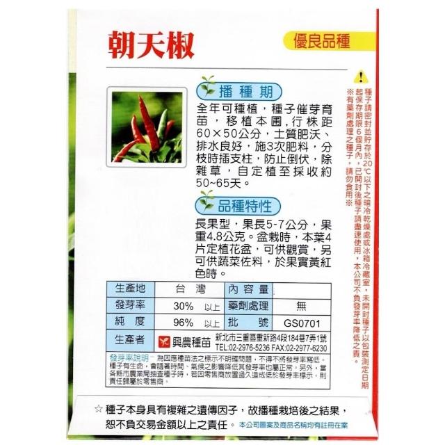 天橙種子朝天椒種子 辣椒 約12粒 蔬果種子 果菜類 全年可播種 興農種苗 彩色原包裝