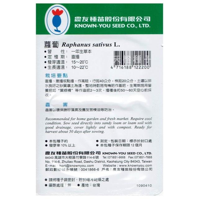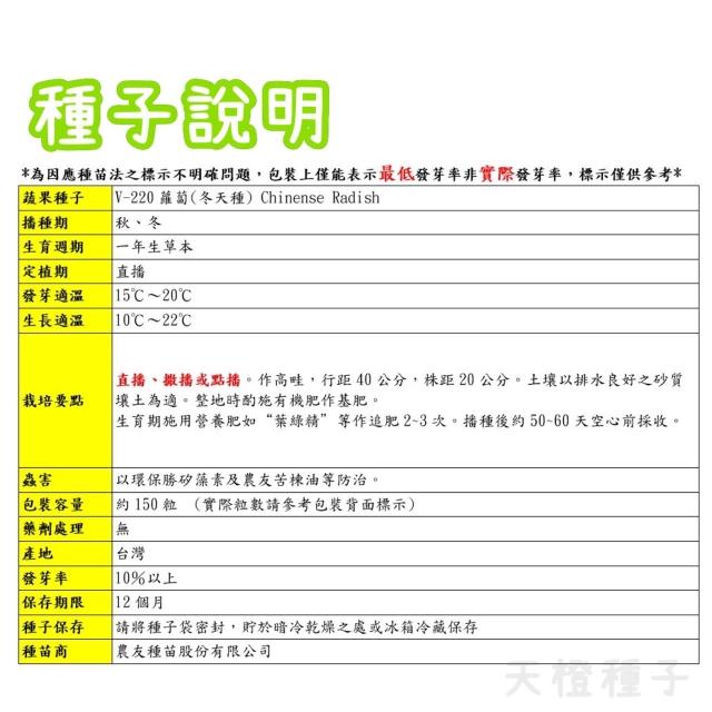 天橙種子蘿蔔種子 V-220 約150粒 白蘿蔔(冬天種) 蔬果種子 根莖類 農友種苗 彩色原包裝