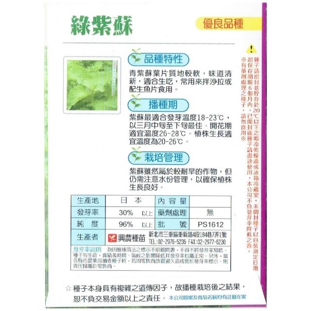 天橙種子綠紫蘇種子 青紫蘇 1公克 3月播種 香辛類種子 興農種苗 家庭園藝 彩色原包裝