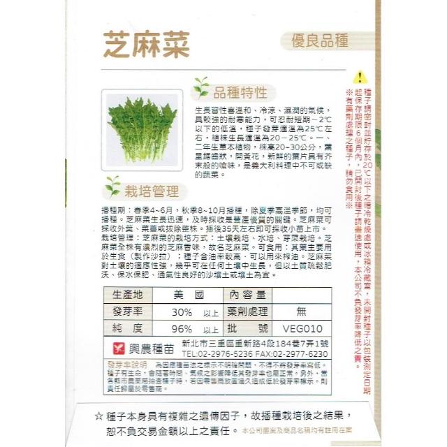 天橙種子芝麻菜種子 約1公克(約400粒) 可生食或製作沙拉 美國進口 葉菜類種子 興農種苗 家庭園藝 彩色原包裝