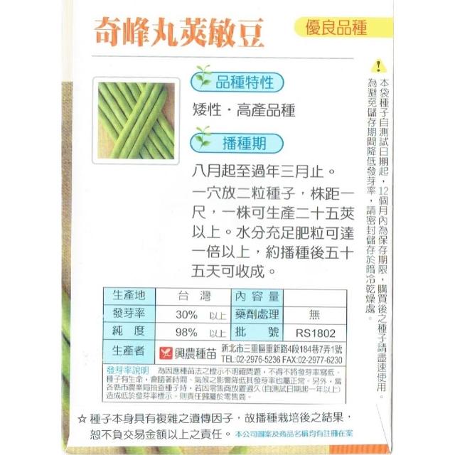 矮性敏豆|8~3月播種|興農牌