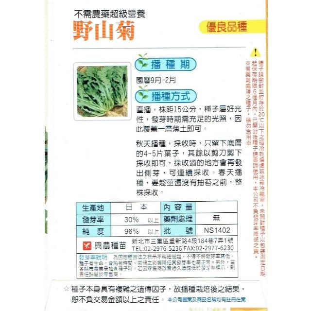 天橙種子野山菊種子 裂葉茼蒿 中葉春菊 約5公克 9~2月播種 日本進口 葉菜類種子 興農種苗 家庭園藝 彩色原包裝
