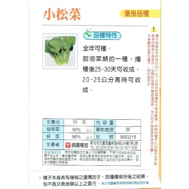 松江菜|全年可播種|興農牌