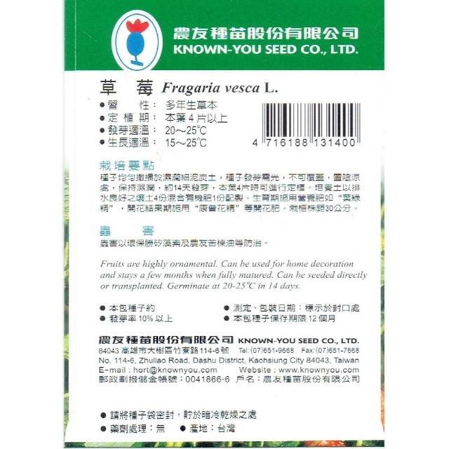 天橙種子草莓種子 I-145 約80粒 9~3月播種 水果類種子 農友種苗 家庭園藝 彩色原包裝