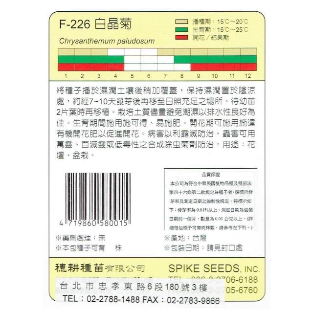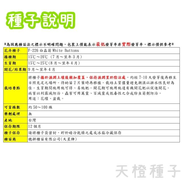 天橙種子白晶菊種子 F-226 7~3月播種 花卉類種子 天星牌 穗耕種苗 家庭園藝 彩色原包裝