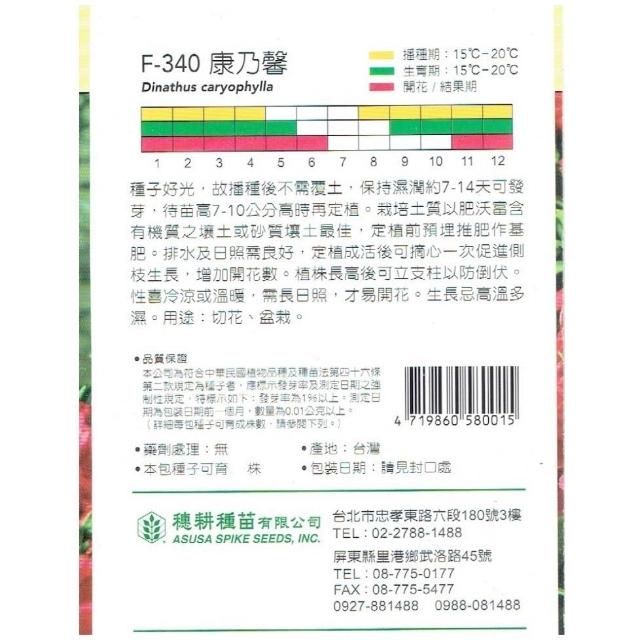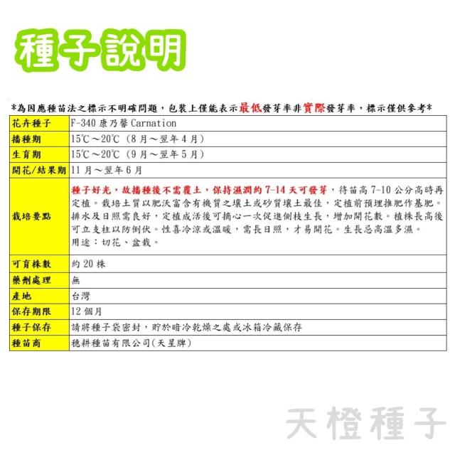 天橙種子康乃馨種子 F-340 花卉類種子 8~4月播種 天星牌 穗耕種苗 家庭園藝 彩色原包裝
