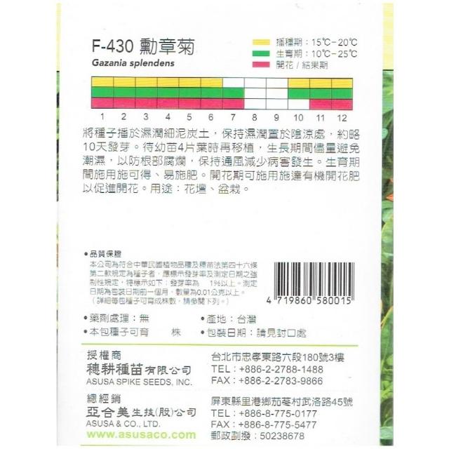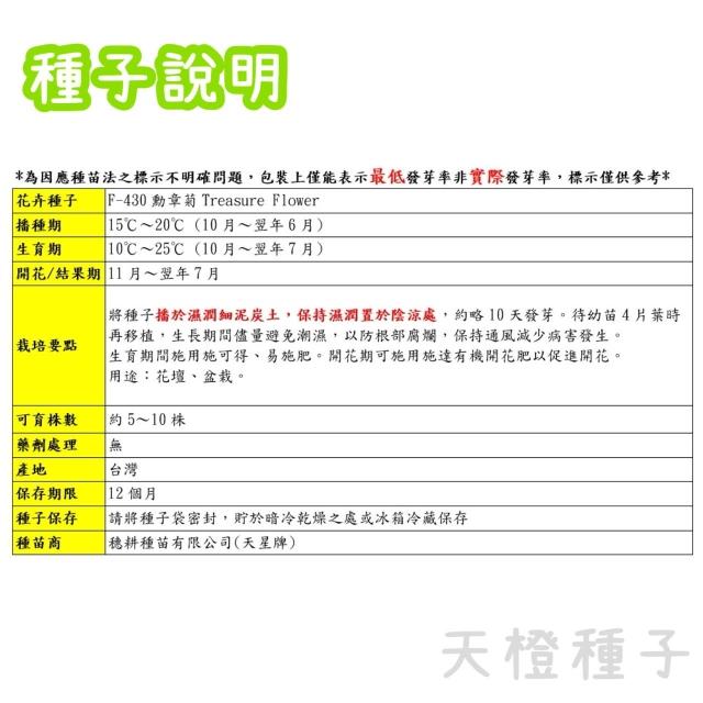 天橙種子勳章菊種子 F-430 混合色 10~6月播種 花卉類種子 天星牌 穗耕種苗 家庭園藝 彩色原包裝