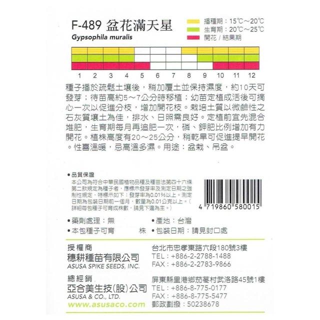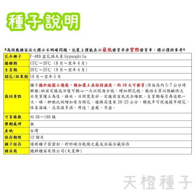 天橙種子盆花滿天星種子 F-489 花卉類種子 8~4月播種 天星牌 穗耕種苗 家庭園藝 彩色原包裝