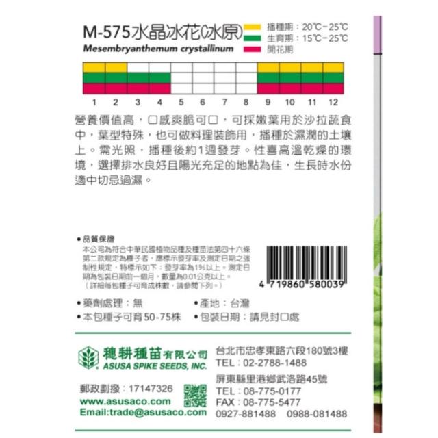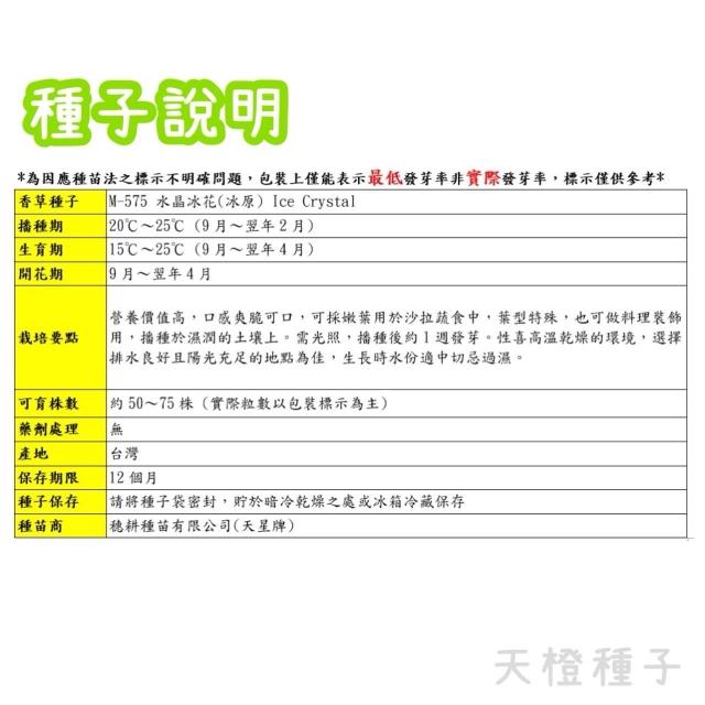 天橙種子水晶冰花種子 冰原 香草種子 9~2月播種 天星牌 穗耕種苗 家庭園藝 彩色原包裝