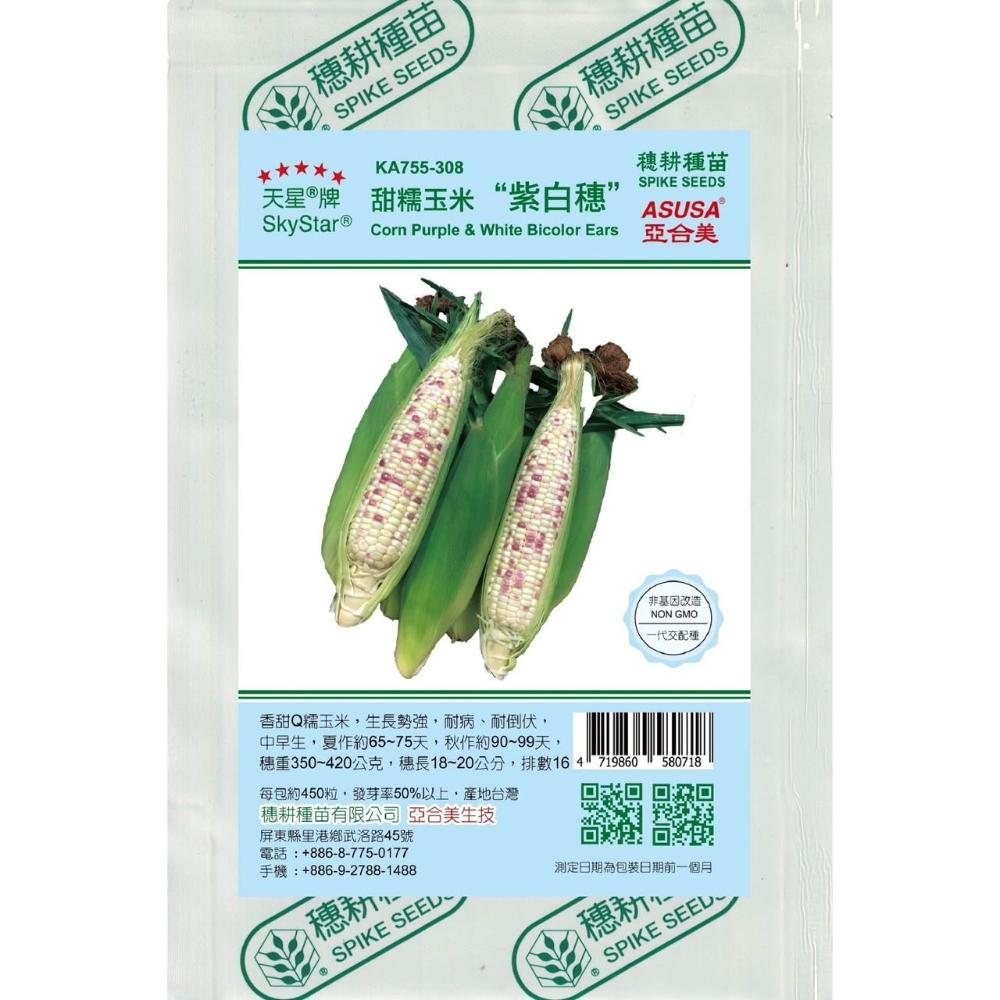 天橙種子甜糯玉米-紫白穗種子 約450粒 根莖類種子 天星牌 中包裝 家庭園藝 彩色原包裝