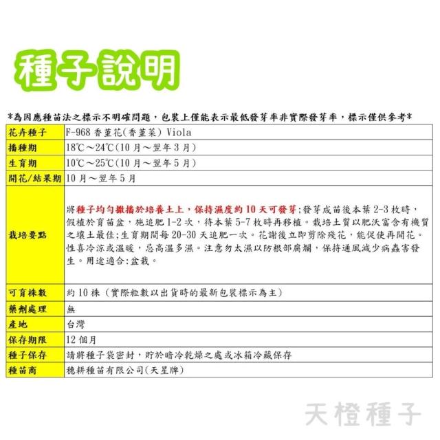 天橙種子香堇花種子 香堇菜 F-968 混合色 花卉類種子 10~3月播種 天星牌 穗耕種苗 家庭園藝 彩色原包裝