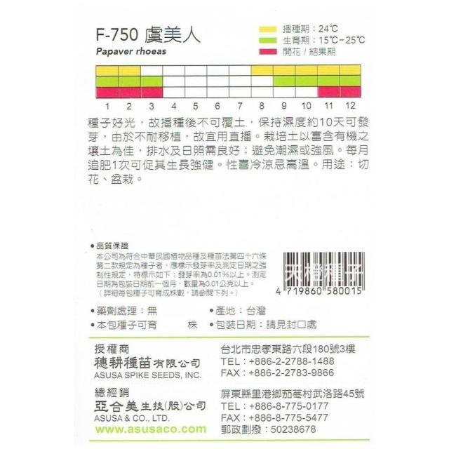 天橙種子虞美人種子 F-750 混合色 花卉類種子 8~2月播種 天星牌 穗耕種苗 家庭園藝 彩色原包裝