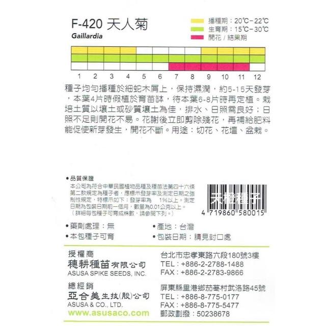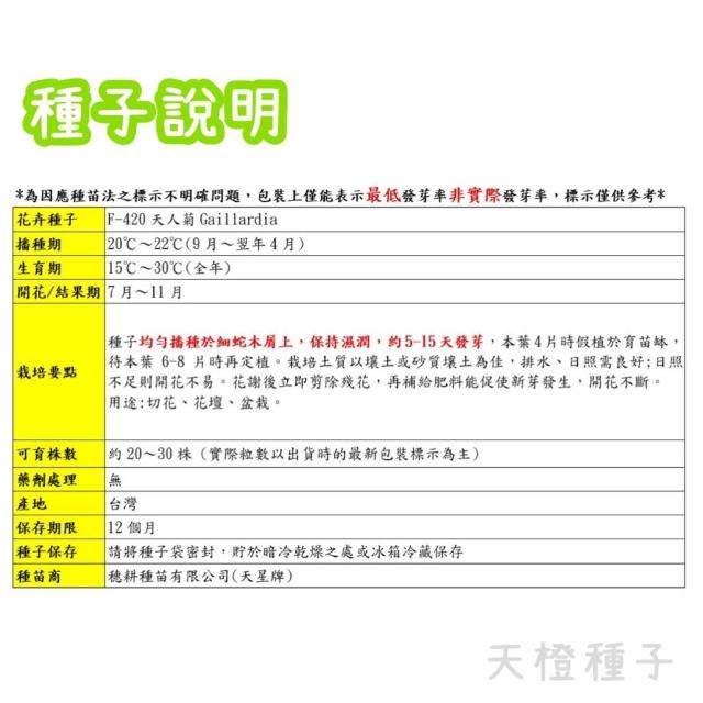 天橙種子天人菊種子 F-420 混合色 花卉類種子 9~4月播種 天星牌 穗耕種苗 家庭園藝 彩色原包裝