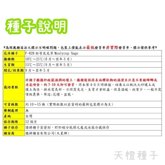 天橙種子粉萼鼠尾草種子 F-828 籃紫色 花卉類種子 8~3月播種 天星牌 穗耕種苗 家庭園藝 彩色原包裝