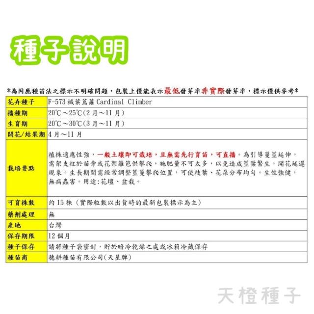天橙種子槭葉蔦蘿種子 F-573 橘紅色 花卉類種子 2~11月播種 天星牌 穗耕種苗 家庭園藝 彩色原包裝