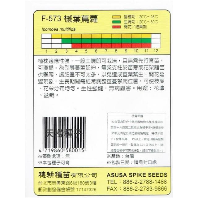 天橙種子槭葉蔦蘿種子 F-573 橘紅色 花卉類種子 2~11月播種 天星牌 穗耕種苗 家庭園藝 彩色原包裝