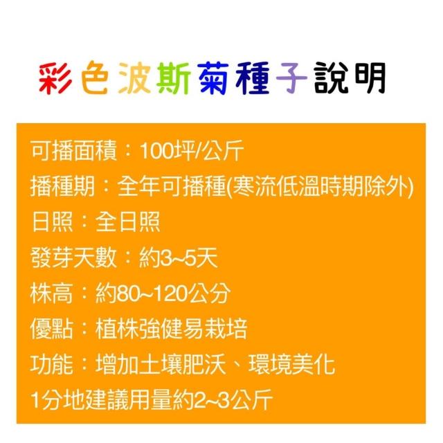 天橙種子彩色波斯菊種子 1公斤裝 景觀/花海/綠肥/美化環境用 全年可播種 可播面積100坪 新鮮種子
