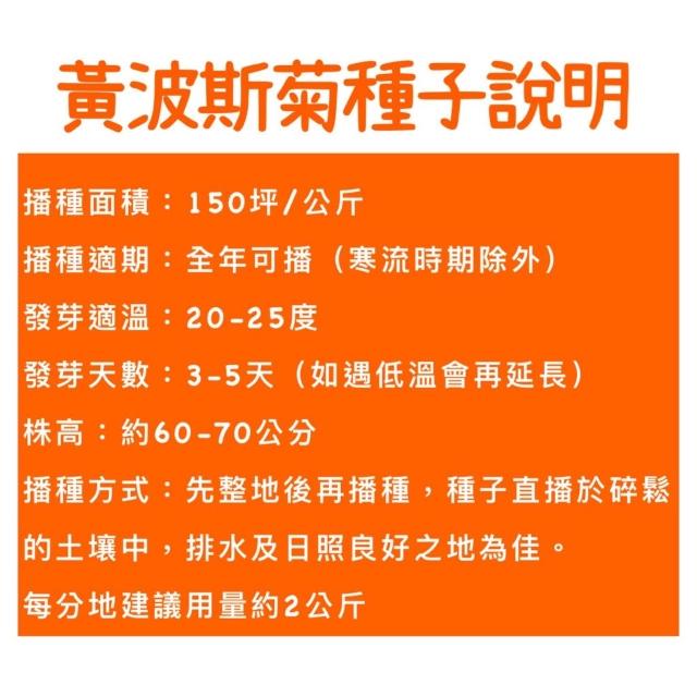 天橙種子黃波斯菊種子 1公斤裝 全年可播種 花海種子 景觀/綠肥/環境美化用 可播150坪 新鮮種子
