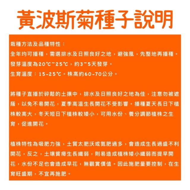 天橙種子黃波斯菊種子 1公斤裝 全年可播種 花海種子 景觀/綠肥/環境美化用 可播150坪 新鮮種子