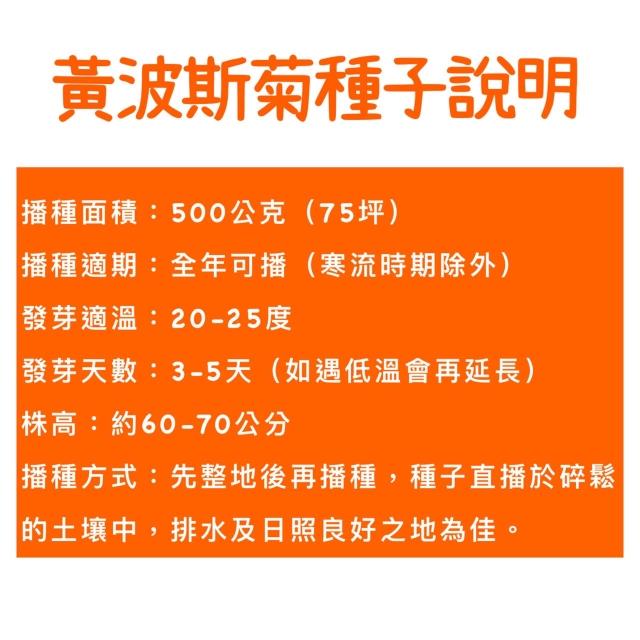 天橙種子黃波斯菊種子 100公克/500公克裝 全年可播種 花海種子 景觀/綠肥/環境美化用 新鮮種子