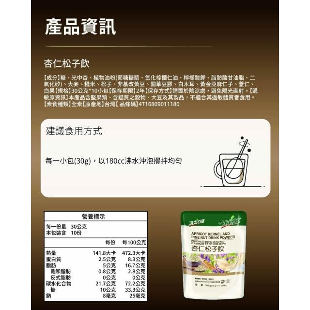 健康時代《杏仁松子飲》有糖隨身包 30g*10包 [極細杏仁]+[營養松子]滋補配方便利隨身沖泡飲品