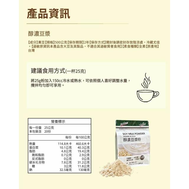 蛋白質40%升級版!健康時代醇濃豆漿粉(500克無加糖)《醇濃豆漿粉》成份只有黃豆!非基改.無香料.無防腐劑